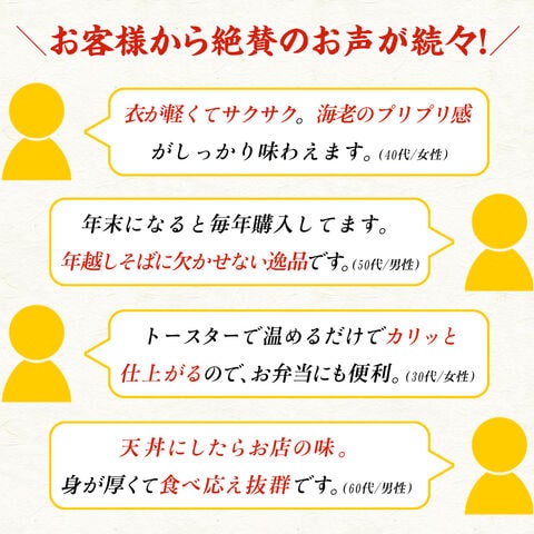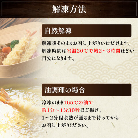 | ◎高級ブラックタイガーを使用 ◎粗放養殖で育った身質の良い海老だけを厳選 ◎衣率を抑え“海老が主役”の食べごたえ ◎ミックス粉不使用で風味豊かな仕上がりに ◎解凍するだけで食べられる利便性も魅力 ◎肉厚で華やかな見た目で食卓の彩に ブラックタイガーの旨みと食感を最大限に活かした“極上 海老天ぷら”。 |