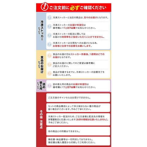 | 【1】お刺身OK!カット生ずわい蟹500g <原材料> 生ズワイ蟹(カナダ産)・レモン果汁/酸化防止剤【ビタミンC・亜硫酸塩】・クエン酸ナトリウム 【2】特大ブラックタイガーむきえび300g(解凍後250g) <原材料> むきえび(インドネシア産)【ブラックタイガー、養殖】、食塩、ph調整剤 【3】お刺身用ほたて貝柱100g(北海道産) <原材料> ホタテ(北海道産) 【4】お刺身用越前甘えび500g(日本海産・カナダ産) <原材料> 甘エビ(福井県産) 【5】根昆布とろろ25g <原材料>(昆布/北海道産・醸造酢・砂糖) ※ご注文状況、および入荷状況により、予告なしに商品内容・原材料が変更になる場合がございます。 |