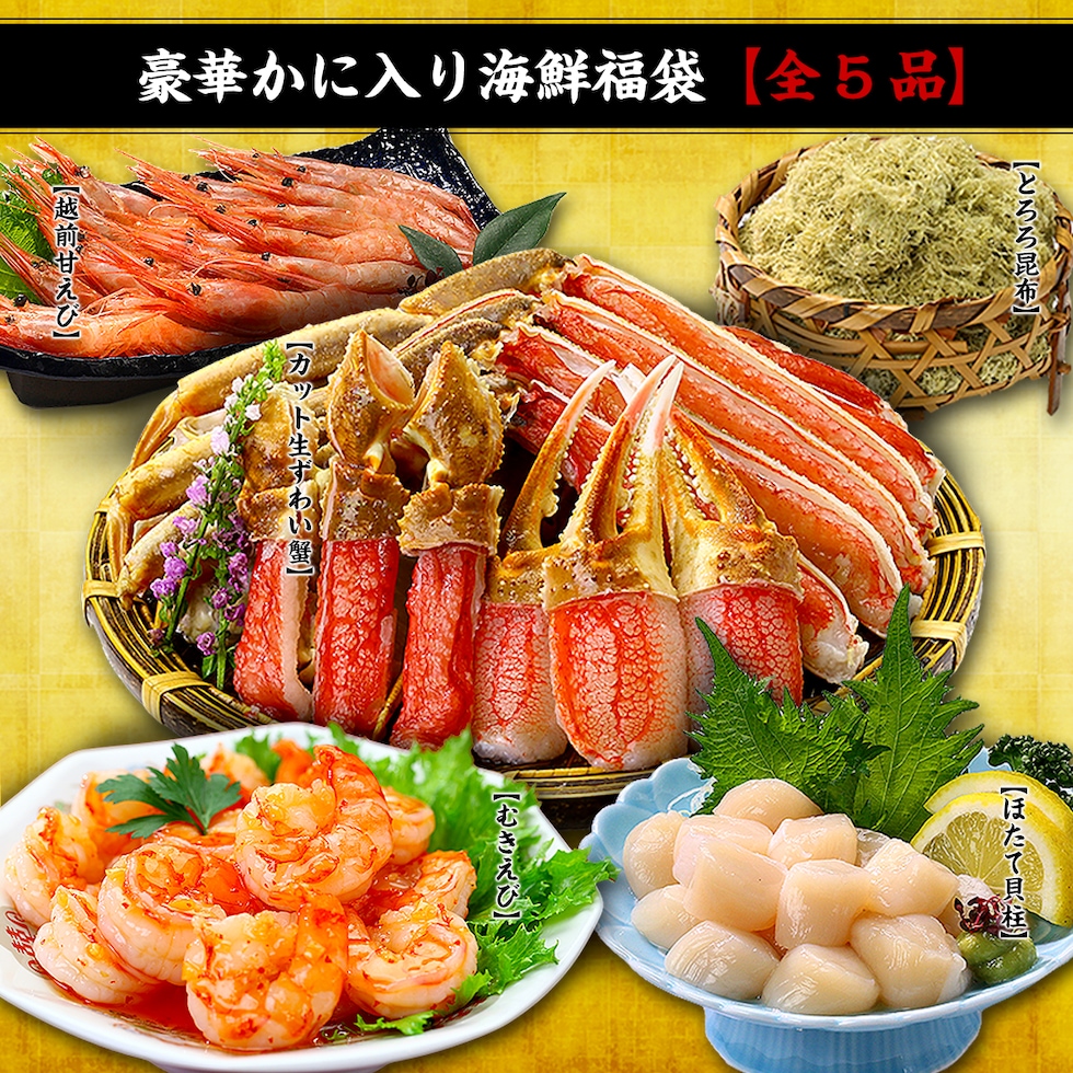 プレゼント ギフト 中身が分かる 豪華カニ入り 海鮮福袋【全5品】プレゼント 日本海さかな街 贈り物 北陸 福井県 海鮮セット 福袋 同梱不可 カニ ホタテ エビ 昆布 冷凍食品 年末年始 正月 お歳暮
