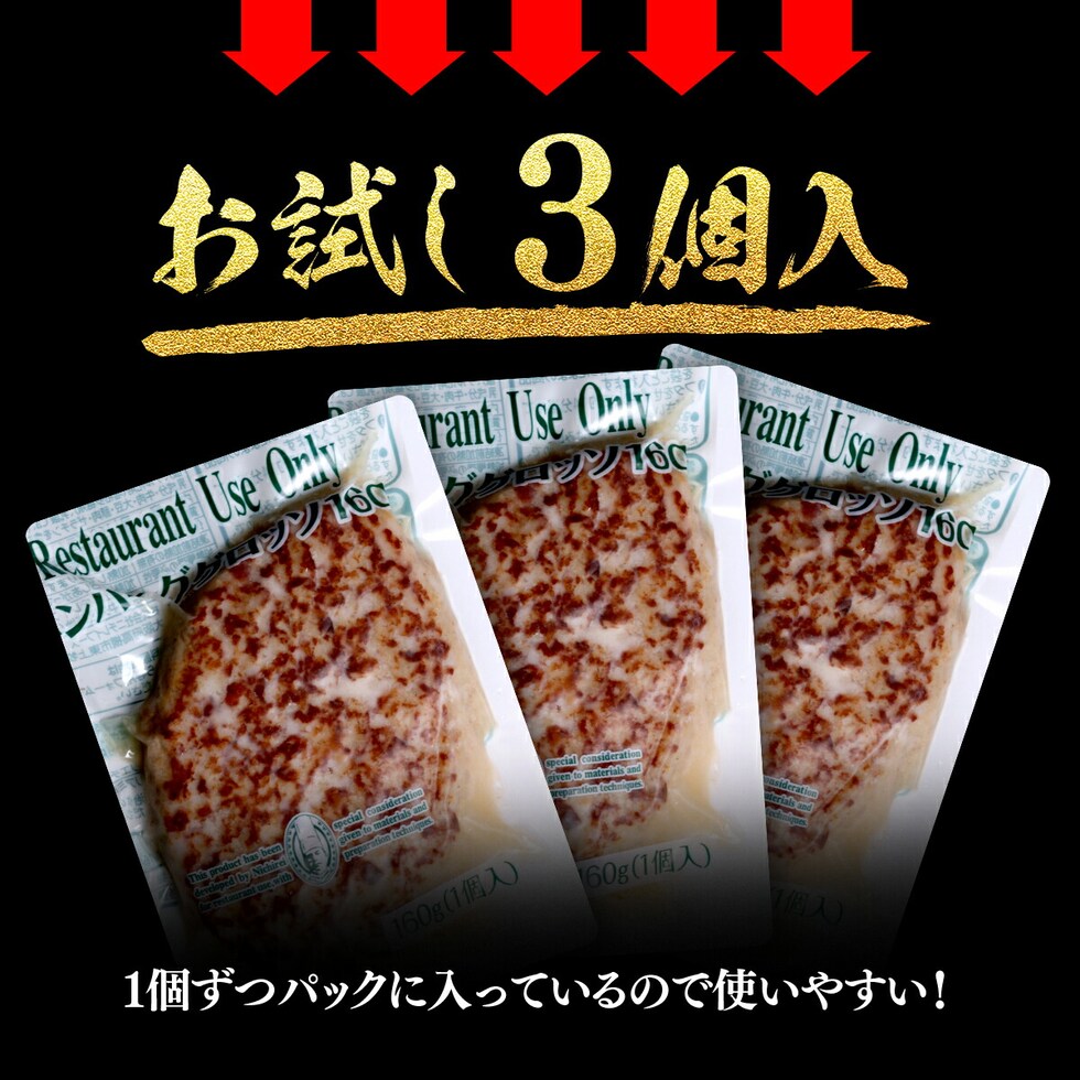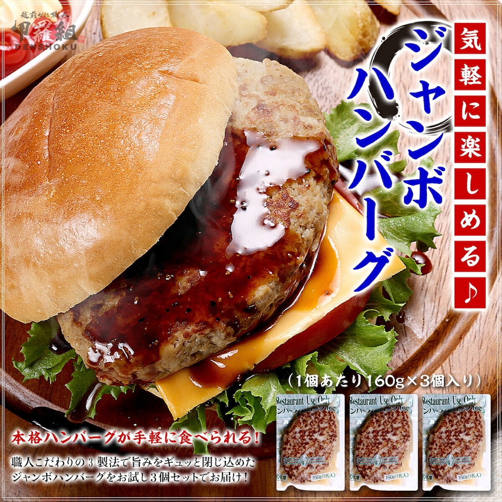 【お試し3個セット】 ジャンボ ハンバーグ 160g×3個入り はんばーぐ 煮込み 時短 レンチン お手軽 簡単 バーガー 冷凍食品