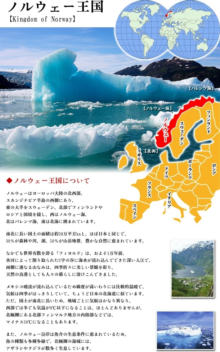 | ★北極圏に近いノルウェーの海から届く一級品のサバ! ★食べ応え抜群の大型&肉厚サイズを厳選! ★魚体が大きいので脂質含量が20-30%にもなります! ★開いて塩加工してあるので面倒な下ごしらえは不要 ★塩焼きの他にも、味噌煮、しょうが煮、フライなどにも! ★話題のDHA、EPAも豊富!栄養満点&ヘルシー食材♪ ★冷凍保存1カ月OK!冷凍庫の常備食にお薦め! 北極圏に近い北欧の食料庫ノルウェーの海から届く大型サイズの肉厚とろサバをご紹介します!ふっくら肉厚な身、したたり落ちる脂、絶妙の旨味…一度食べたらヤミツキ間違いなしの美味しさです。その美味しさの秘密は、ズバリ「北極に近い冷たく澄んだクリーンな海」「フィヨルドからのミネラル豊富な雪解け水」「最新技術を用いた加工処理」「政府の徹底した品質管理」などがあげられます。しっかり時間をかけて育った3歳魚以上のサバのみを漁獲。魚体が大きいので、必然的に旨み成分や脂ののり具合も抜群です!なんと、漁の最盛期には脂質含量が20-30%にもなります!この脂はDHA、EPAと言われ、働き盛りのお父さん、勉強に励む子ども達にもピッタリの食材です♪また、塩加工してあるので面倒な下ごしらえは不要。加熱してもパサつかず、塩焼きやみそ煮など定番の和食はもちろん、トマトやカレー味、エスニックや中華風など、どんな味つけにもよくあうので、子どもからお年寄りまで家族みんなで楽しめる素材としておすすめです。常備食として冷凍庫にストックしておくと、メチャ便利です。 |