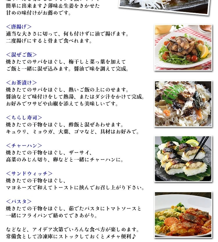 冷凍のまま、焼いてお召し上がり下さい。魚の旨味を引き出すために、最適の塩加減、干し加減に仕上げてあります。いきなり醤油などの調味料を付けると、魚の本来の旨味が分からなくなってしまいます。まずは、何も付けずにそのままお召し上がり下さい。塩分が足りないお客様は、お醤油などを、塩分に敏感なお客様は、大根おろしなどでお召し上がり下さい。 |