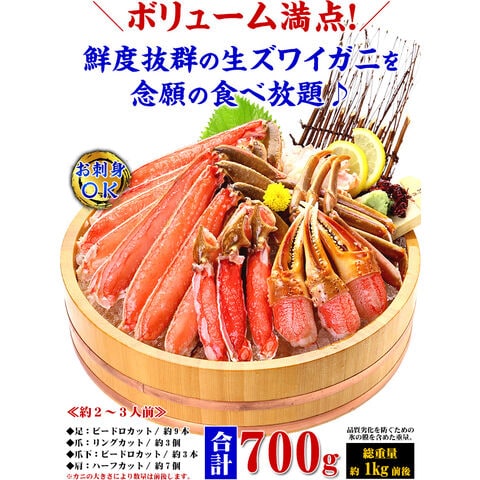 カニ かに 蟹 カット生ずわい蟹 一番人気の定番品700g(総重量1kg) 鍋 ギフト 生ズワイガニ 冷凍 下処理済 ズワイガニ カニしゃぶ 贈答用 お歳暮 カニセット むき身 海鮮 年末年始 正月 お歳暮