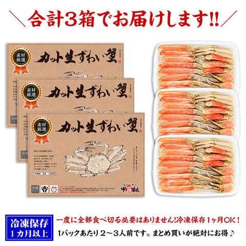 カット生ずわい蟹2.1kg(700g×3パック)約9人前 総重量3kg前後 原材料:ズワイガニ(カナダ産、アメリカ産、ロシア産、バレンツ海)、酸化防止剤(ビタミンC)、調味料(アミノ酸等) ※製品ロットにより産地と添加物が異なります。 |