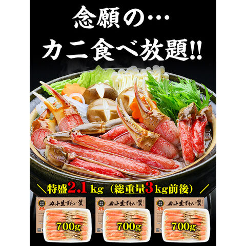 カニ かに 蟹 カット生ずわい蟹 特盛 2.1kg 総重量 3kg カット済み蟹 生ズワイ蟹 カニ ポーション 冷凍かに カニ 通販 人気 カニ しゃぶしゃぶ用 カニ 簡単 お取り寄せ 海鮮 年末年始 正月 お歳暮