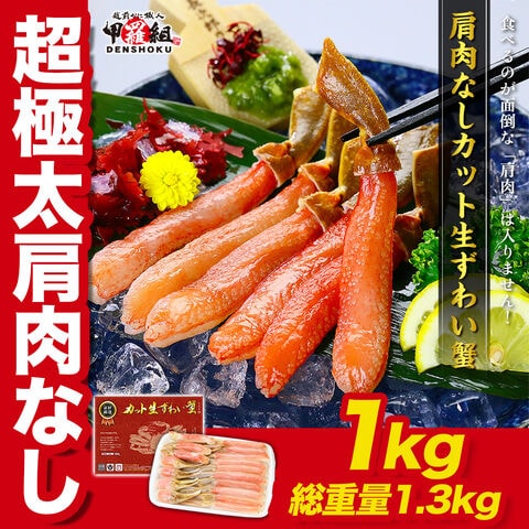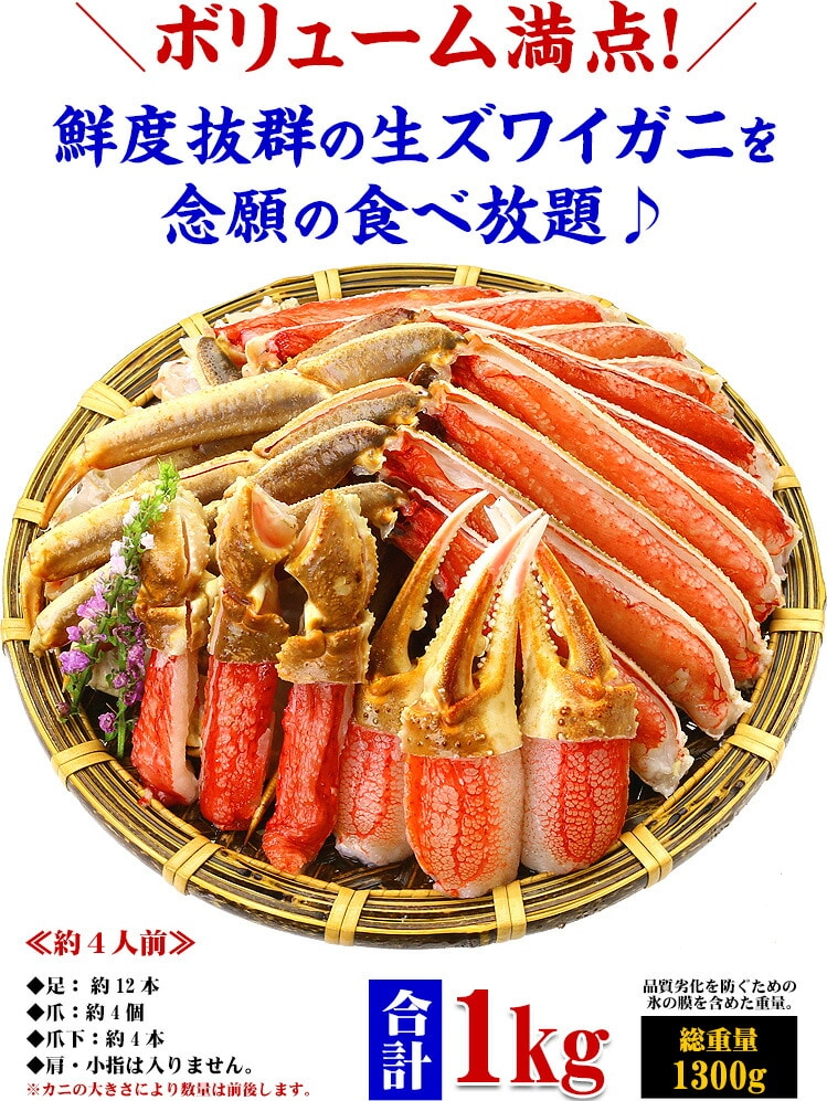 カニ かに 蟹 超特大&超極太4L~5Lポーション!肩肉なしカット生ずわい蟹1kg(総重量1.3kg) お刺身OK 生ずわい蟹 プレミアム 太脚 ポーション カニ刺し カニ鍋 お中元 贈呈用 海鮮