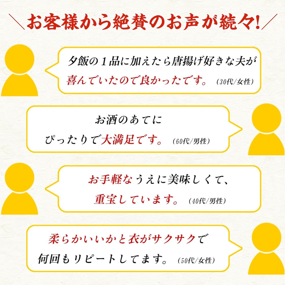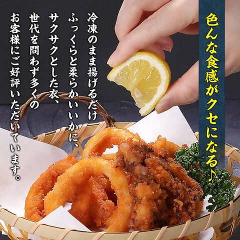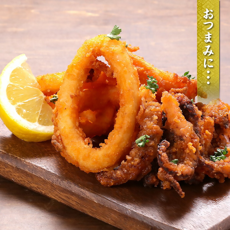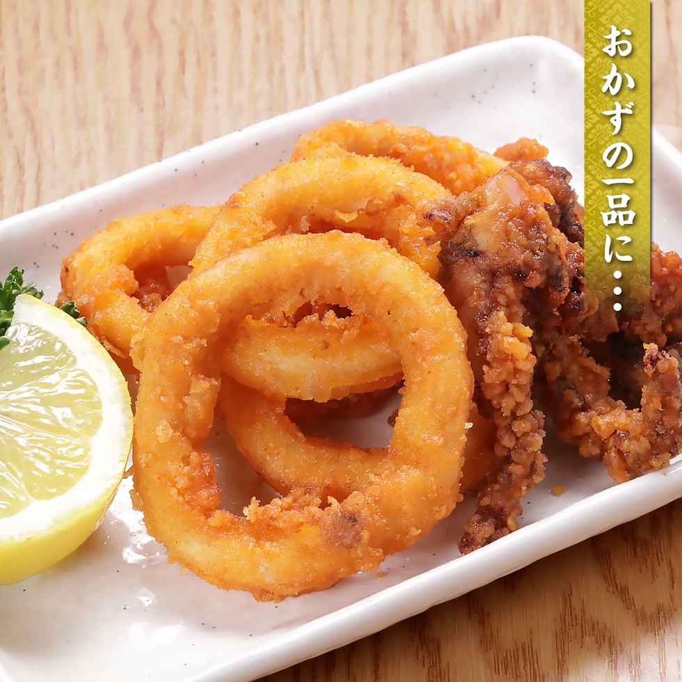 いかを食べやすい大きさにカットし唐揚げにしました。耳・胴体・下足が入っているので色んな食感をお楽しみいただけます♪おつまみや晩ごはんの一品にピッタリです! |