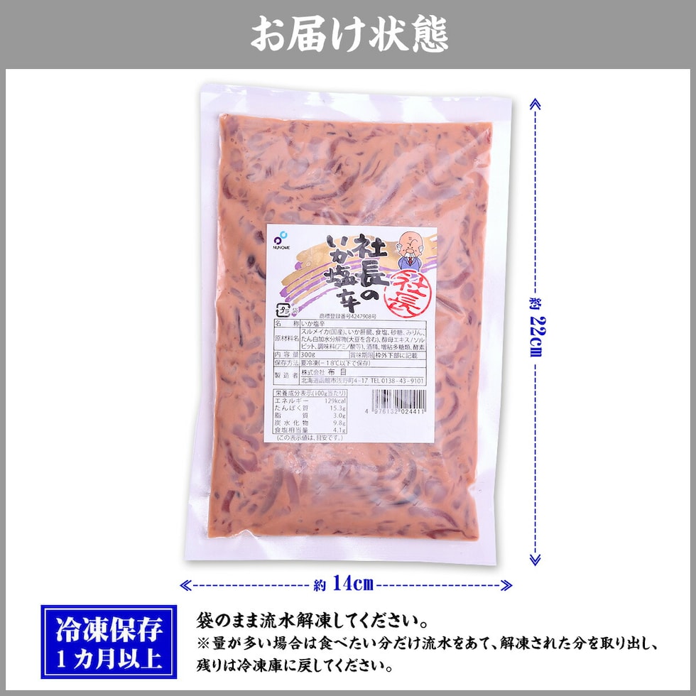 【業務用】社長のいか塩辛300g おつまみ イカ 烏賊 北海道 函館 布目 冷凍食品