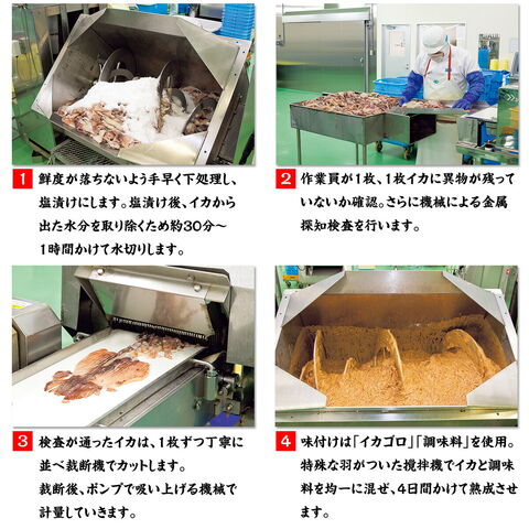 | いか塩辛300g 原材料:スルメイカ(国産)、いか肝臓、食塩、砂糖、みりん、たんぱく加水分解物(大豆を含む)、酵母エキス/ソルビット、調味料(アミノ酸等)、酒精、増粘多糖類、酵素 |