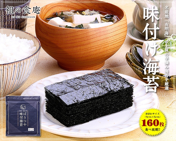 有明産プレミアム味付のり8切160枚(全形20枚分) 焼きのり 焼き海苔 焼のり 焼海苔 焼きノリ 焼ノリ 海苔 のり ノリ 朝ごはん 朝食 おにぎり 正月 年末年始 お歳暮