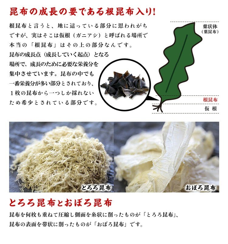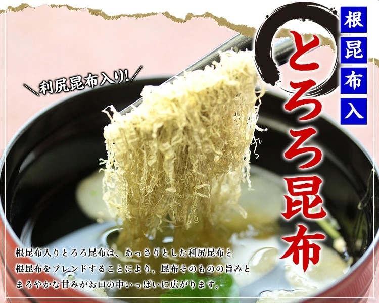 毎度!甲羅組@店長の田辺です!根昆布入りとろろ昆布は、あっさりとした利尻昆布と根昆布をブレンドすることにより、昆布そのものの旨みとまろやかな甘みがお口の中いっぱいに広がります。 |