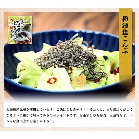 毎度!甲羅組@店長の田辺です!極細塩こんぶは北海道産昆布を使用しています。ご飯になじみやすくするために、また湯戻りがよくなるように細かく切ってあるのがポイントです。お茶漬けやお弁当、お漬物など、いろんな食べ方でお楽しみ下さい。 |