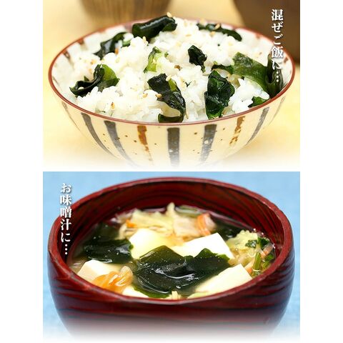 使う分量を水に15分ほど浸し、戻してからお使いください。(お味噌汁やうどんなどの汁物には乾燥のまま入れてもOK) |