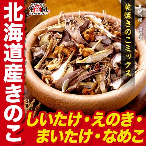 北海道産のしいたけ・えのき・舞茸・なめこを贅沢にブレンドした乾燥きのこミックス。 |