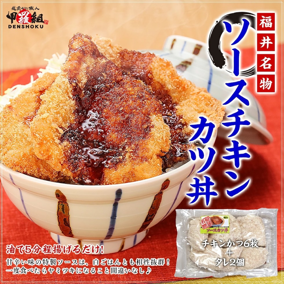 【福井名物】ソースチキンカツ丼セット (ロースチキンカツ6枚+タレ2個) 福井 ソースカツ カツ丼 カツ 丼 惣菜 チキン 鶏肉 ご当地 お取り寄せ 名物 揚げ物 チキンカツ ぐるめぐり 冷凍食品
