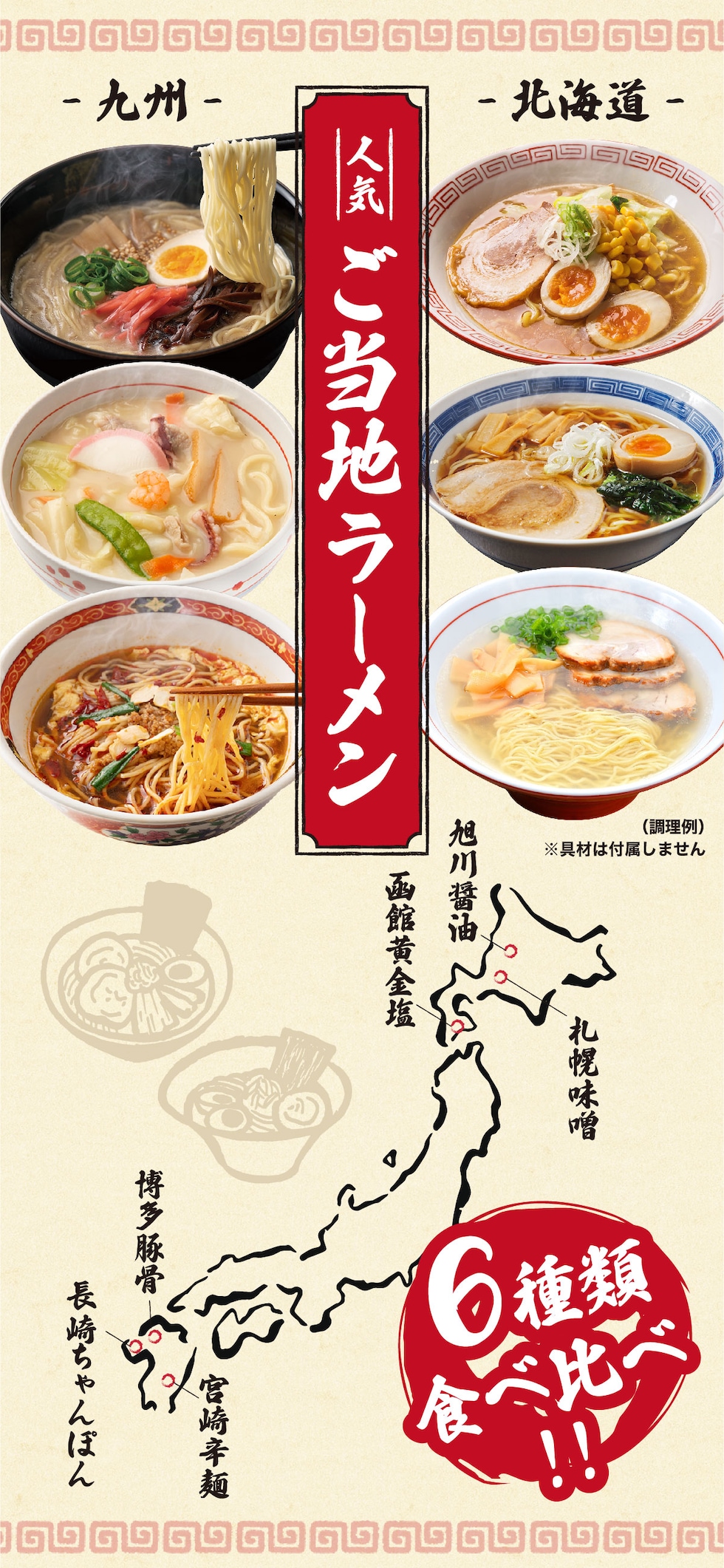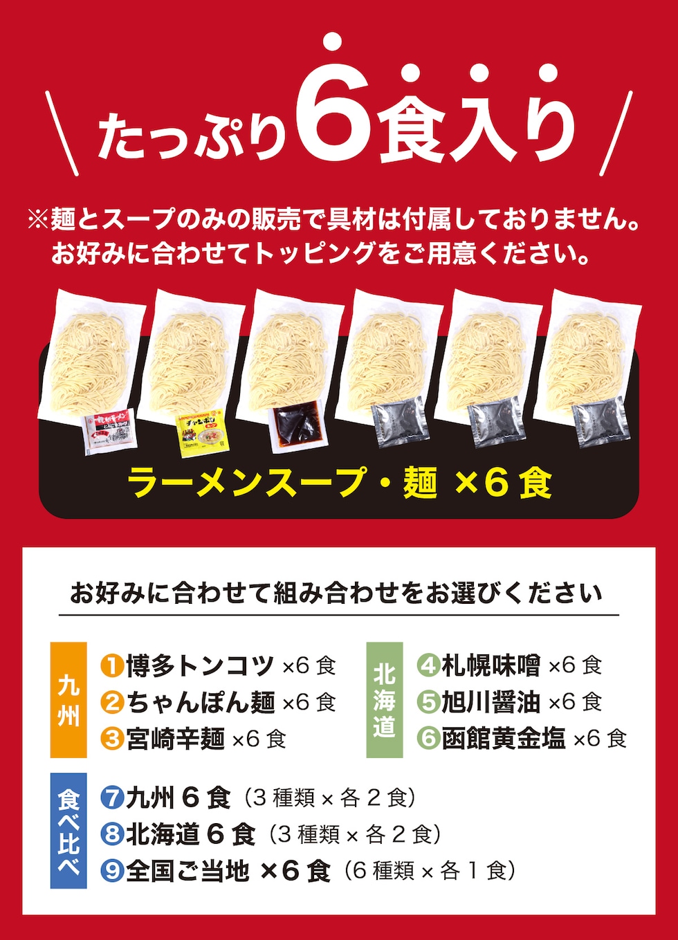 ◎九州&北海道の人気ご当地ラーメン6種類食べ比べ!