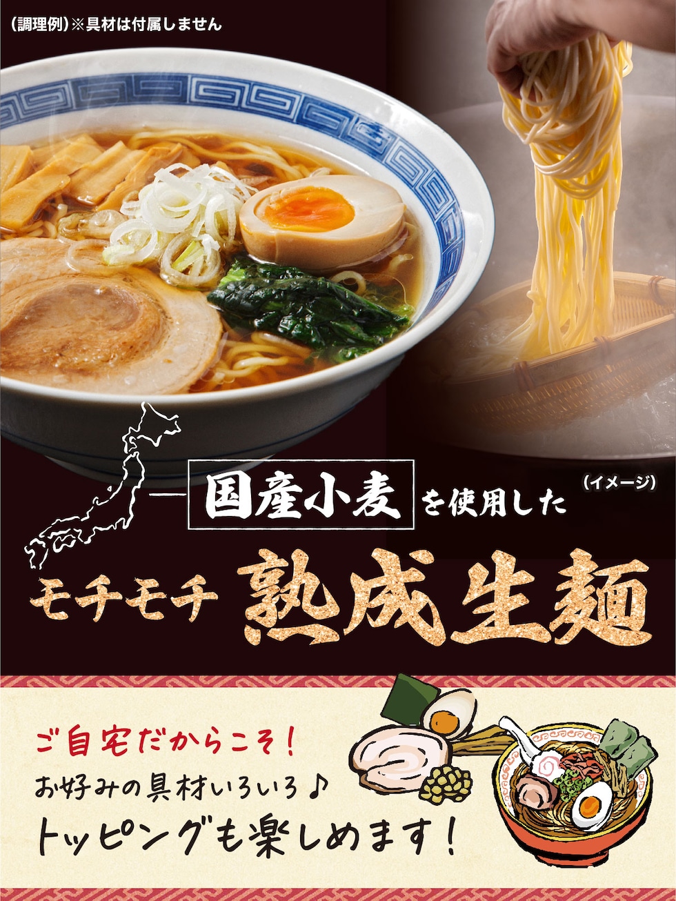 ◎国産小麦を使用したモチモチ熟成生麺!