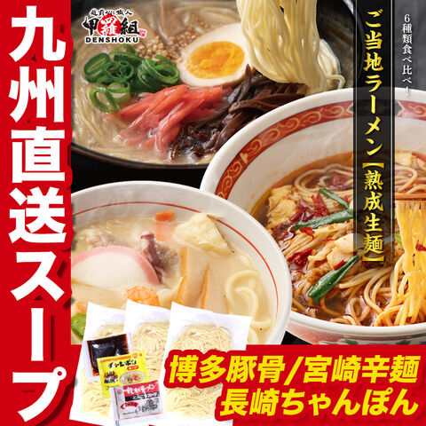 【※12月19日正午以降のご注文は年明け発送】九州&北海道の人気 ご当地 ラーメン 国産小麦を使用したモチモチ熟成生麺6食入【九州6食】博多豚骨 長崎ちゃんぽん麺 宮崎辛麺 年末年始 正月 お歳暮