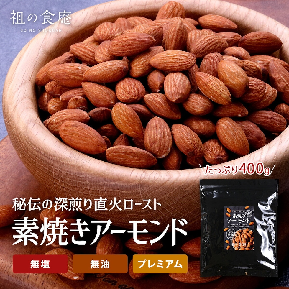 本場カリフォルニア産 無添加 & 素焼き アーモンド たっぷり400g 食べ放題 ナッツ 無塩 高品質 ロースト 大容量 業務用 クリスマス ヨーグルト トッピング サラダ メール便