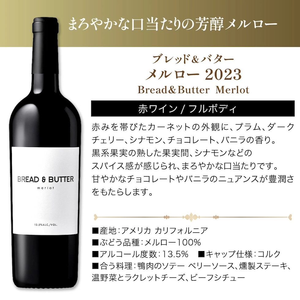 【赤】ブレッド&バター メルロー [2023] 750ml ブレッドアンドバター カリフォルニア 赤ワイン フルボディ Bread&Butter Merlot 750ml bread & butter お中元 お祝い プレゼント