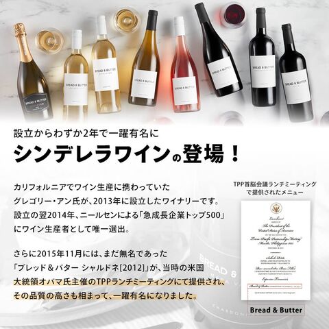 (Bread&Butter Pinot Noir) ◇樽の風味が心地よい、濃厚ピノ・ノワール! 【産地】アメリカ カリフォルニア 【色・味わい】赤ワイン/フルボディ 【ぶどう品種】ピノ・ノワール100% 【Alc】13.5% 【ペアリング】ラムチョップのソテー、うずらのロースト きのこソース、 鴨の冷製スモーク ドライフルーツ添え、トリュフとマッシュルームのクリームパスタ 【キャップ仕様】コルク |