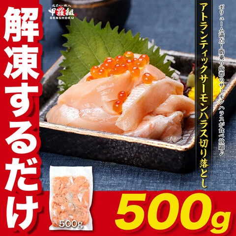 【訳あり】アトランティックサーモン ハラス 切り落とし たっぷり500g サーモン ノルウェー産 サイズ不揃い 生食可 お刺身 大トロ 冷凍食品