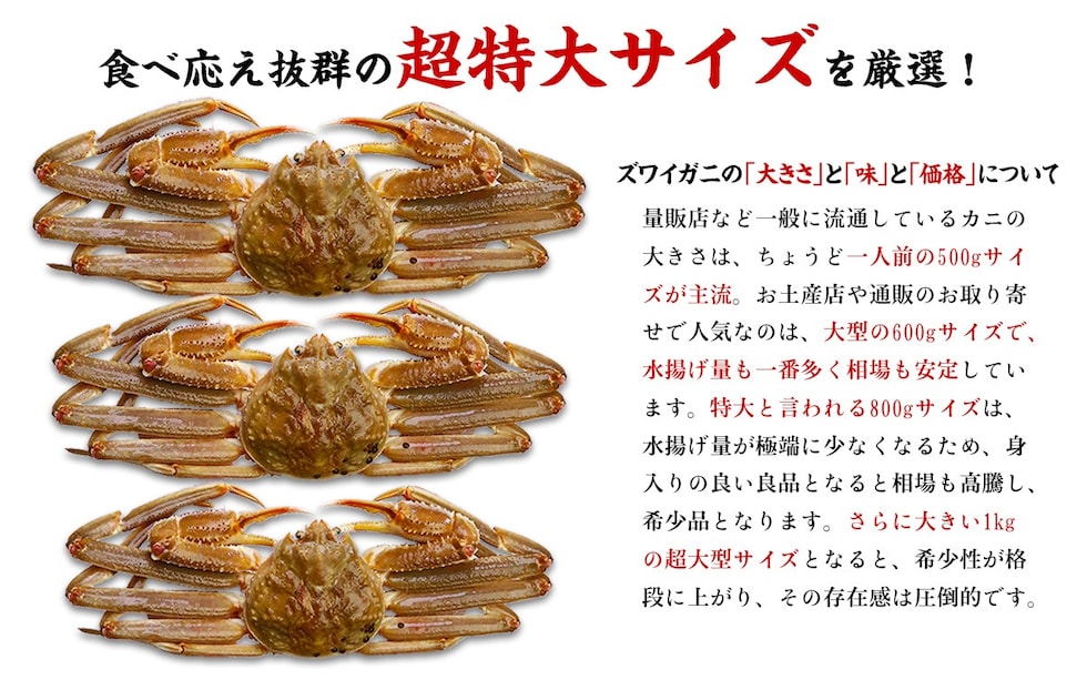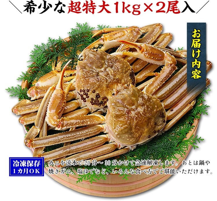 カニ かに 蟹 特大サイズ 生ずわいがに姿1kg前後×2尾 ズワイガニ 生ずわい蟹 特大サイズ