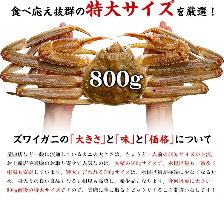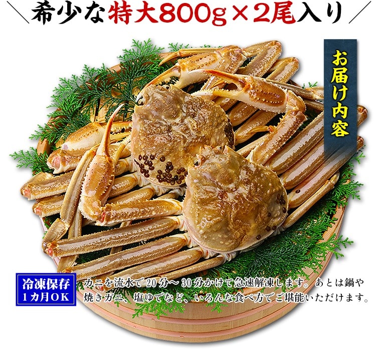 カニ かに 蟹 特大サイズ 生ずわいがに姿800g前後×2尾 ズワイガニ 生ずわい蟹 特大サイズ 年末年始 正月 お歳暮