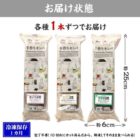 韓国風海苔巻き キンパ3種セット (プルコギ・サムギョプサル・ビビンバ 各1本) お徳用 冷凍食品 お弁当 おかず おつまみ おうちごはん パーティー 時短 まとめ買い 韓国風海苔巻き 冷凍 キンパ 275g 崔さんのお店 韓国 ご飯惣菜 冷凍食品