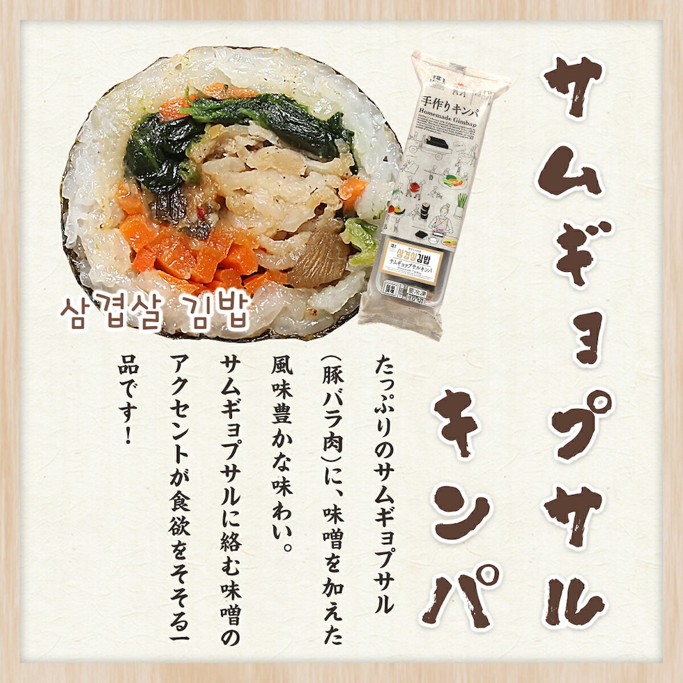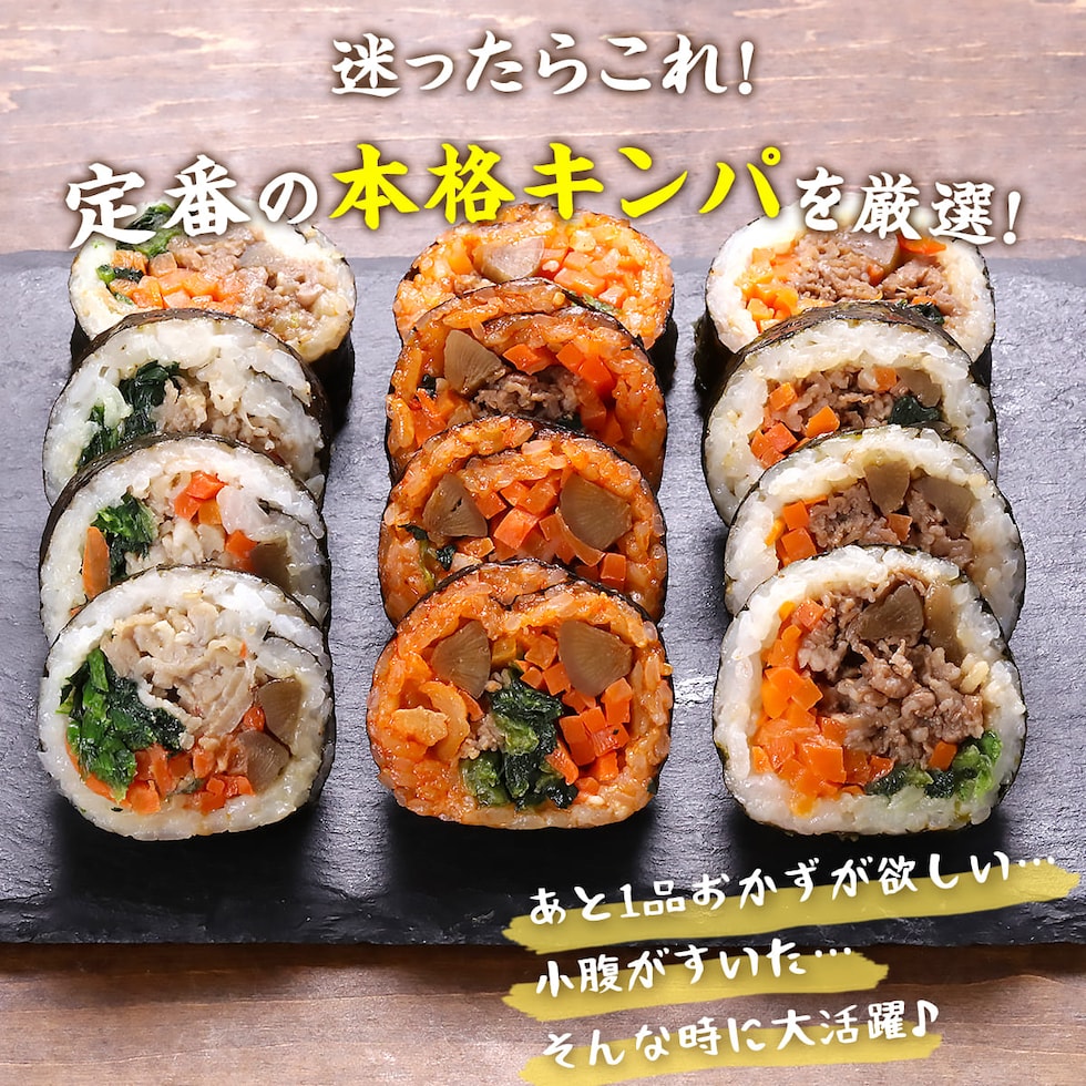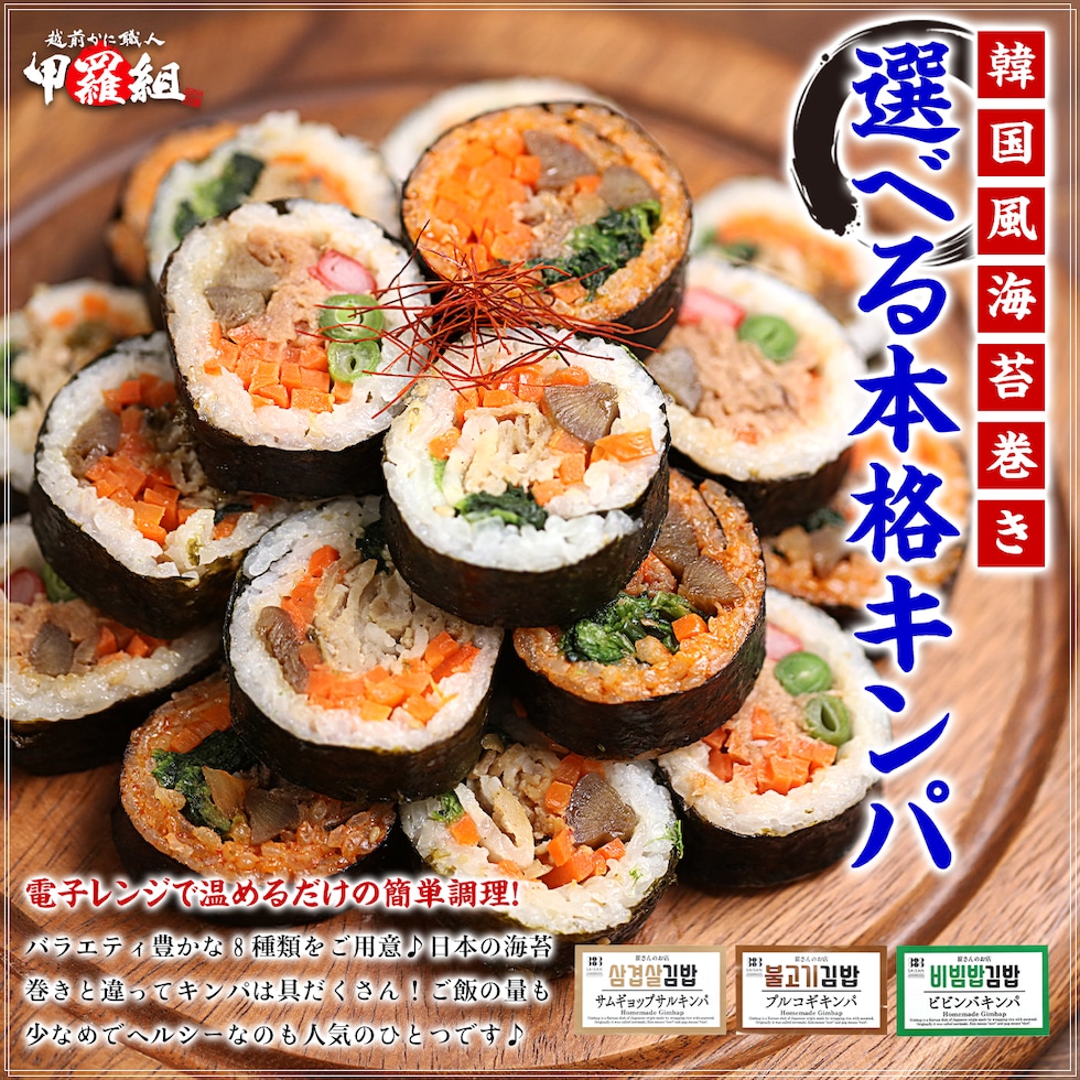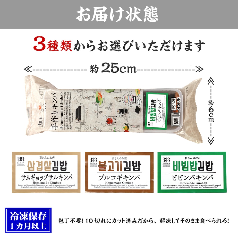 【韓国風海苔巻き】 選べる 本格 キンパ 3種 (ビビンバ・プルコギ・サムギョプサル) お弁当 おかず おつまみ おうちごはん 時短 崔さんのお店 韓国 レンチン 惣菜 冷凍食品