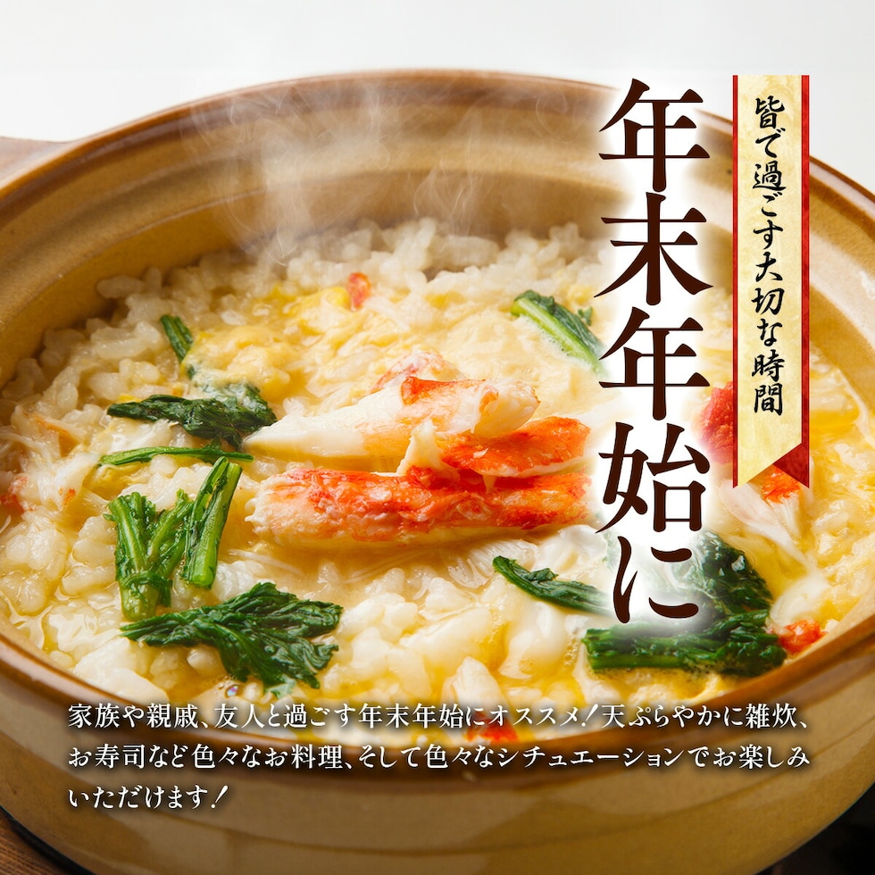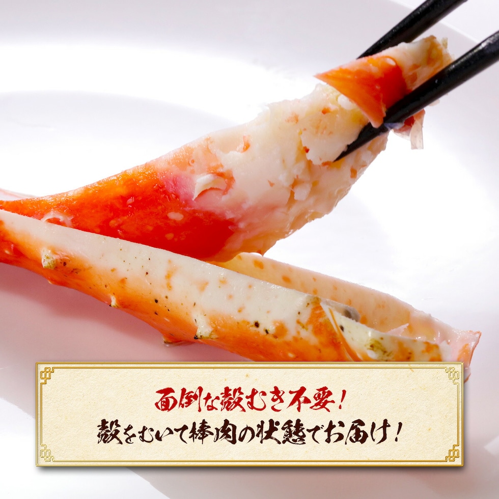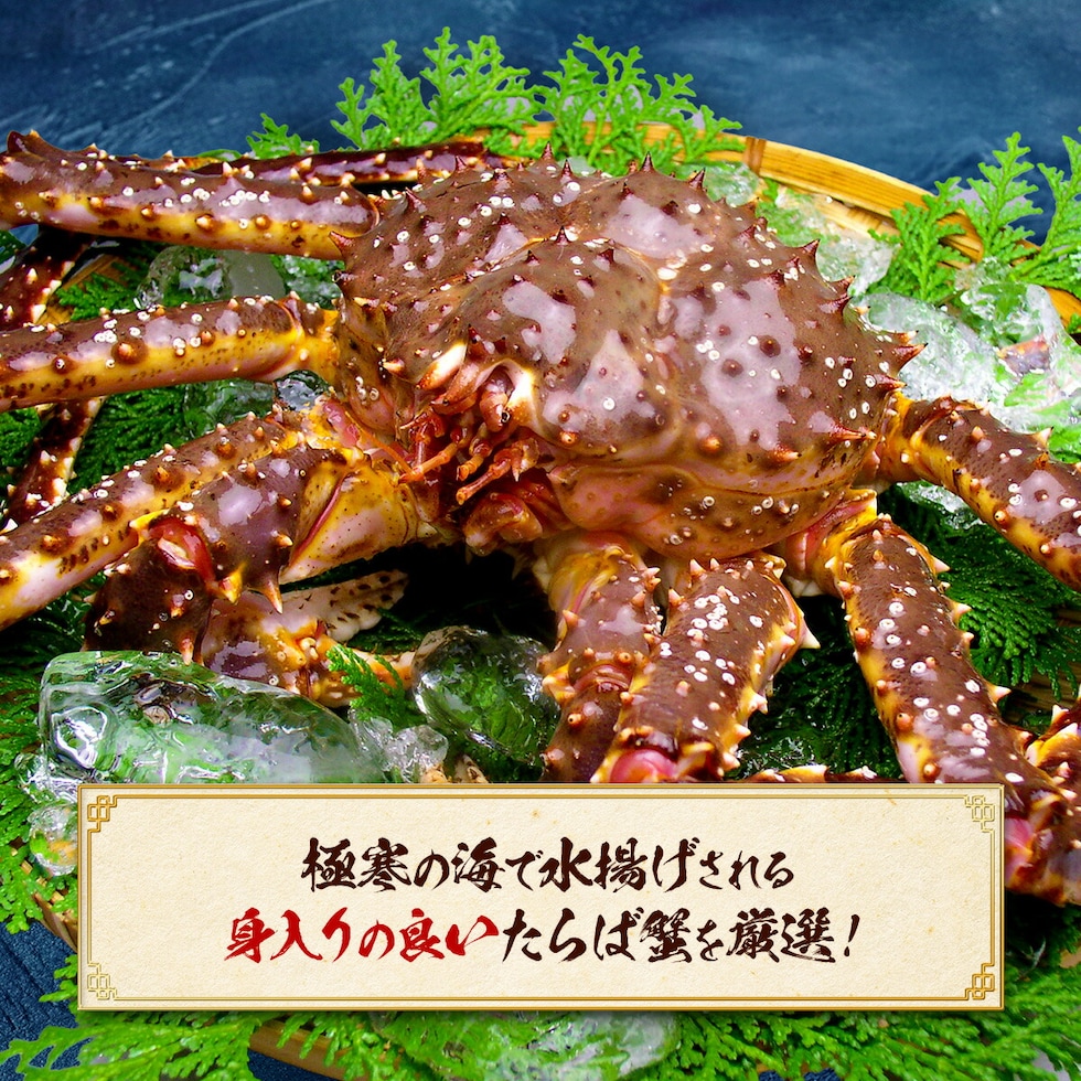 ズワイガニや毛ガニとは比べものにならない足の太さです。極寒の海で水揚げされた身入りの良いタラバガニを厳選し、船上で活〆ボイルし美味しさそのまま急速凍結した一級品です。 |