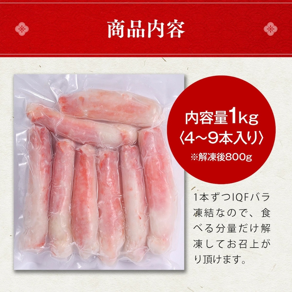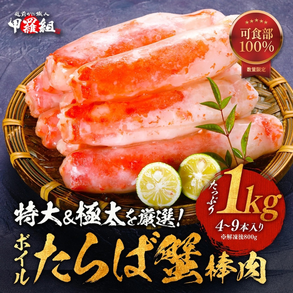 【可食部100%】ボイルたらばがに極太棒肉たっぷり1kg(4~9本入り)※解凍後800g 冷凍食品 たらば たらば蟹 かに カニ 蟹 タラバガニ ボイル 足むき身 年末年始 正月 お歳暮