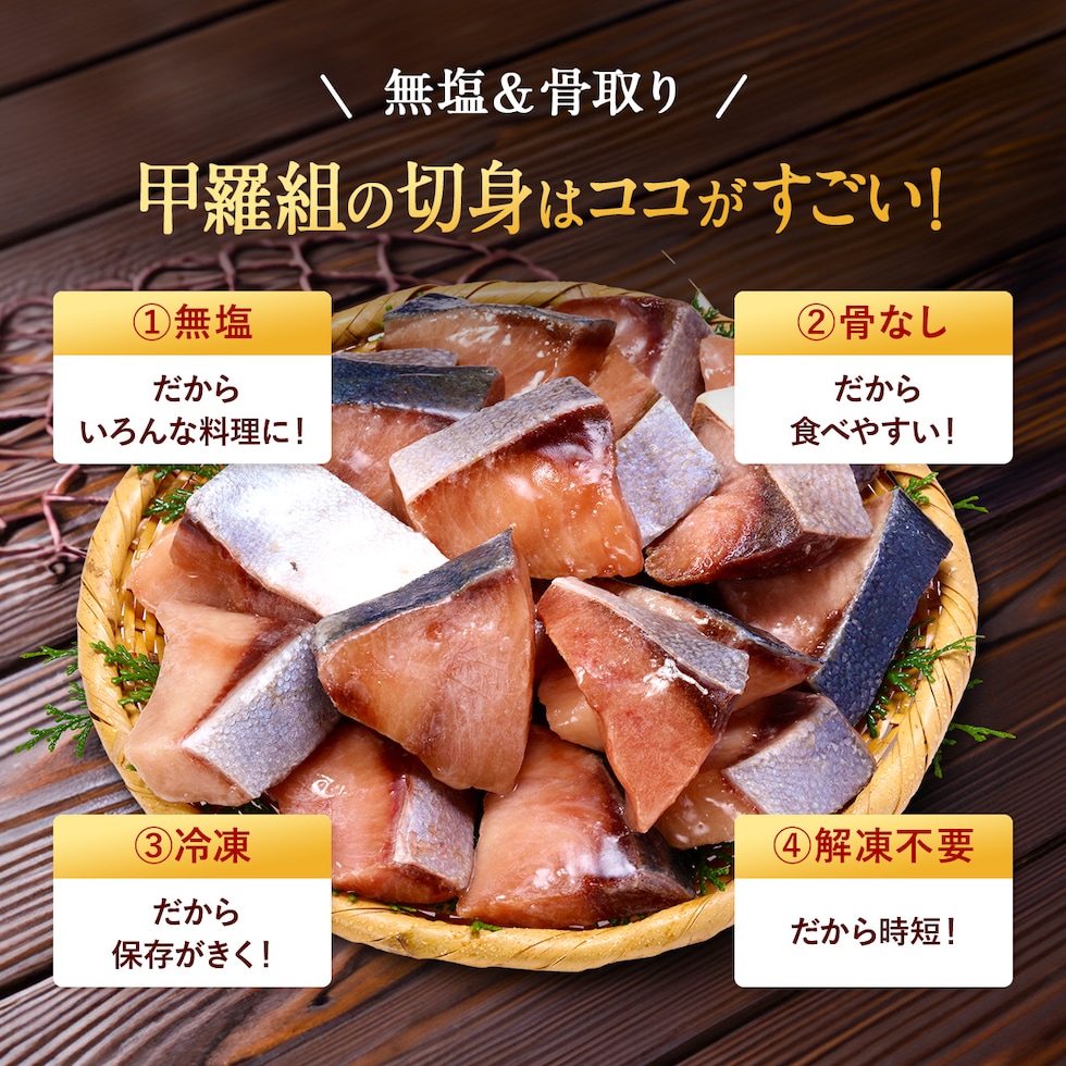 ブリは古くから縁起の良い出世魚として有名な魚で、家庭料理はもちろん、居酒屋や割烹料理等、様々な場面で人々に親しまれています。そんな日本の食卓には欠かせないブリですが当店のブリはその中でも日本有数の天然ブリの産地長崎県で、魚体約8kg前後の大型の原料のみを厳選しています。天然物ならではのハリのある身質と食べやすいサラッとした脂のりが特徴で焼きや煮つけなど、様々な料理と抜群の相性を発揮し、日々の食卓でも大活躍すること間違いありません。また骨も鱗も除去済で、1枚ずつ個別に冷凍してあることから「食べたい時に」「食べたい分だけ」「簡単に食べられる」という抜群の使い勝手も実現しています。 |