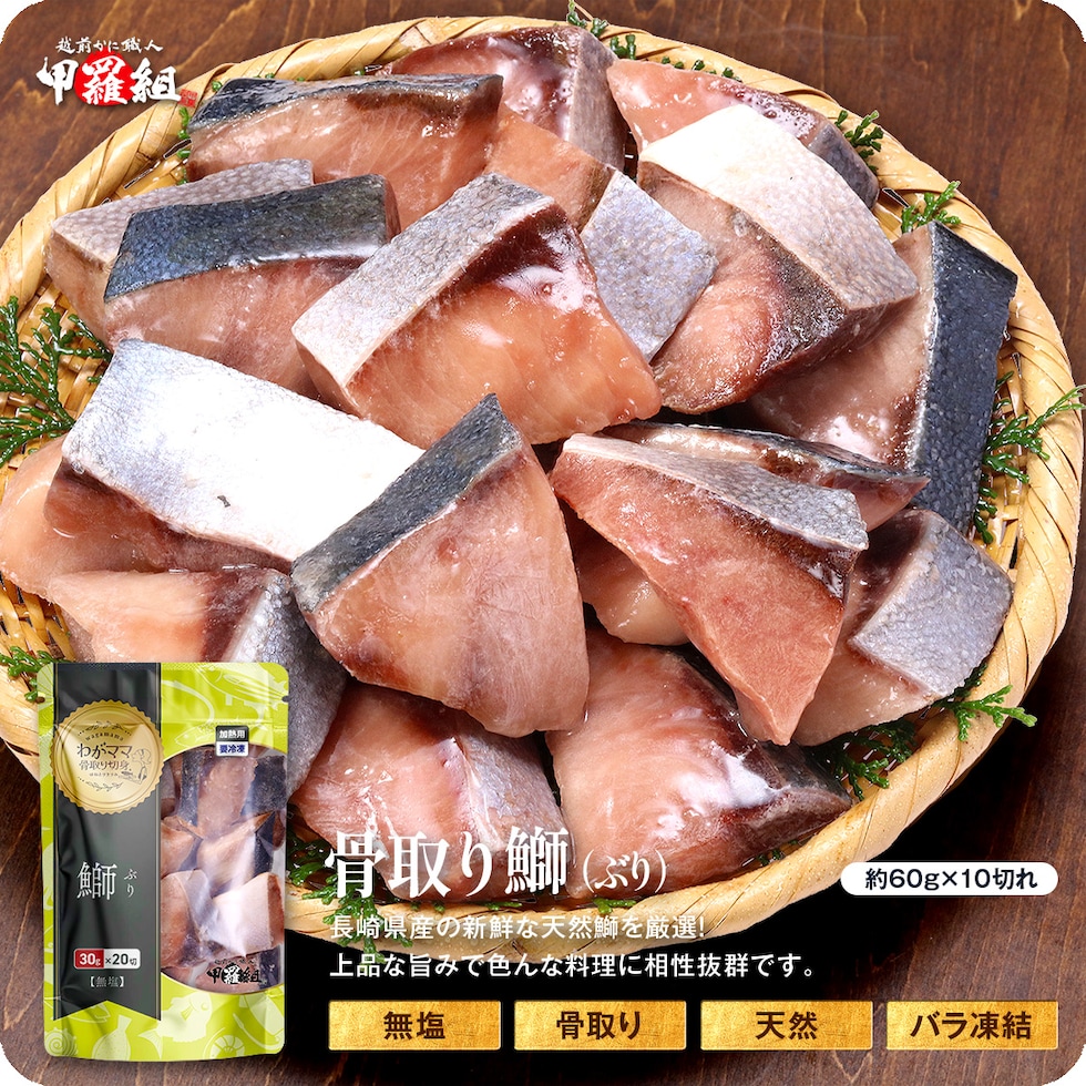 無塩 骨取り 天然ぶり 切身(60g×10切)ぶり ブリ 切り身【わがママ骨取り切身】弁当 朝食 冷凍 年末年始