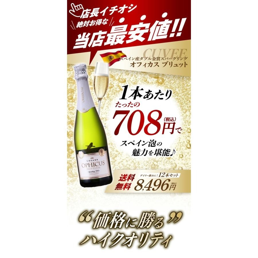 ダブル金賞 スペイン産 辛口 スパークリングワイン オフィカス ブリュット スパークリング ワイン 12本 セット「 750ml x 12本 」 クリスマス プレゼント 爆買