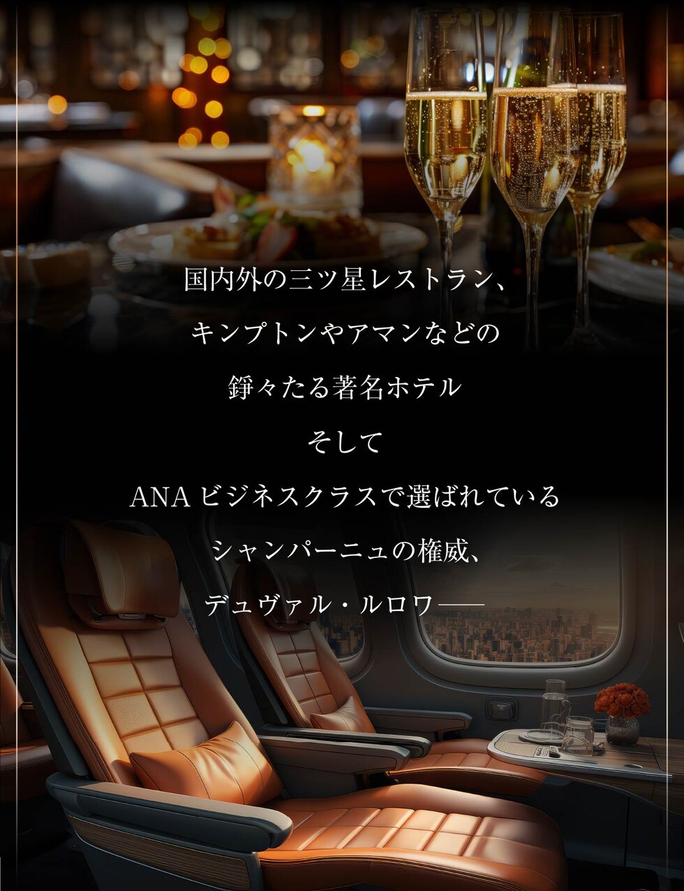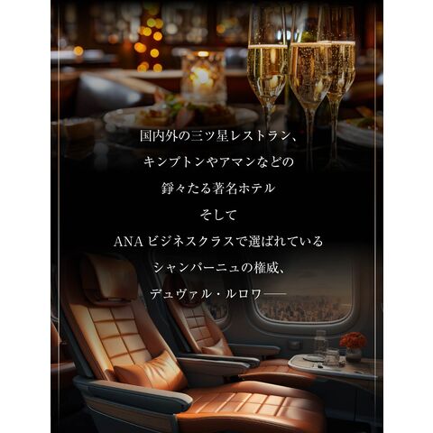 スパANAビジネスクラス、国内外の三ツ星レストランや著名ホテルさんで選ばれている最高峰のシャンパン!約15のクリュとリザーヴワインを惜しみなく加え、複雑な味わいを表現している。