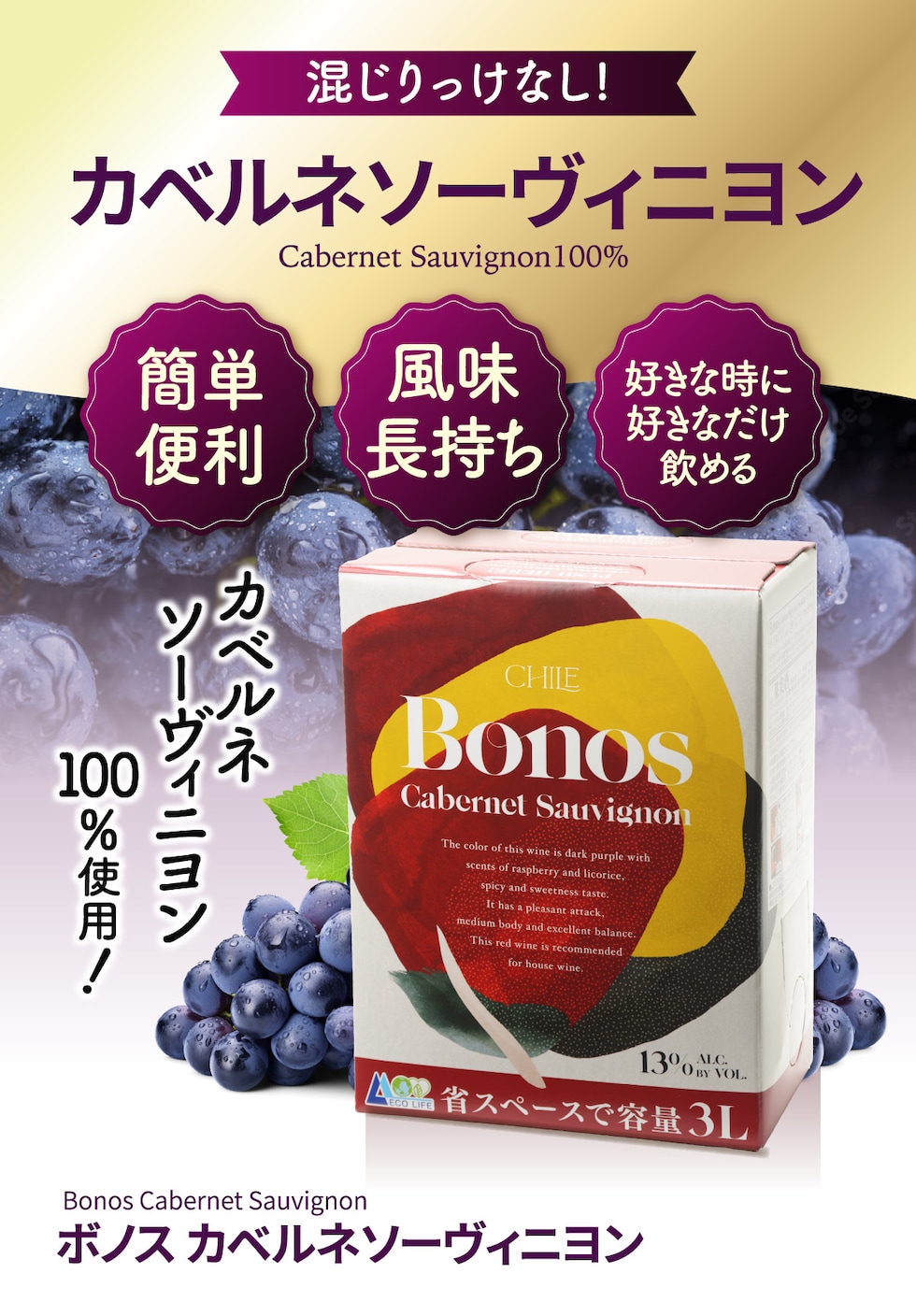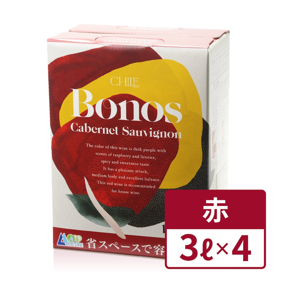 【赤】コスパ抜群 大容量 箱ワイン 赤 3Lx4箱【ボノス カベルネ】 お手頃価格で毎日美味しく飲める バッグインボックスワイン イベント パーティ お祝い クリスマス 年末年始 正月 お歳暮