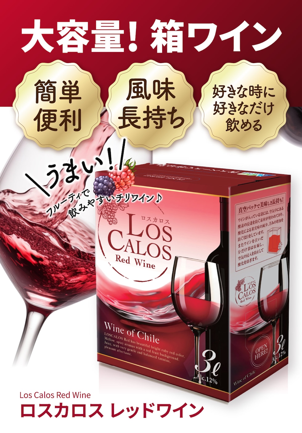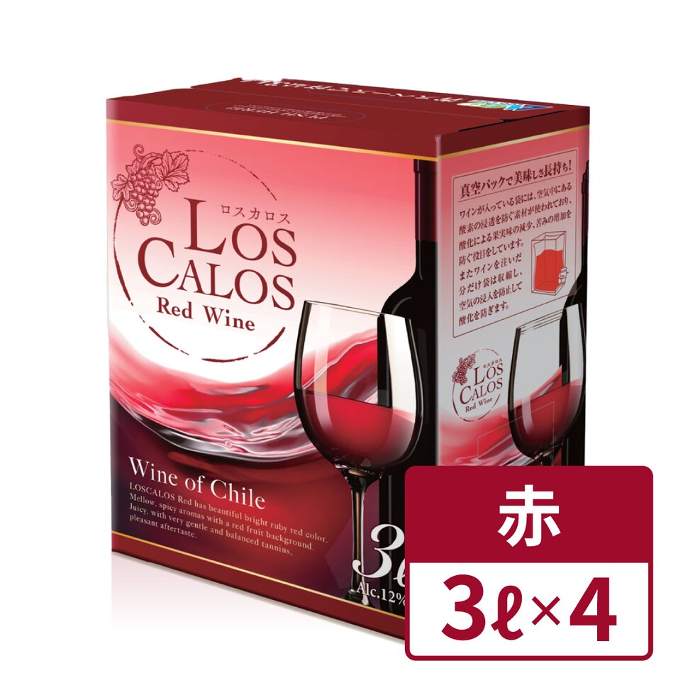【赤】コスパ抜群 大容量 箱ワイン 赤 3Lx4箱【ロスカロス】 お手頃価格で毎日美味しく飲める バッグインボックスワイン イベント パーティ お祝い クリスマス 年末年始 正月 お歳暮