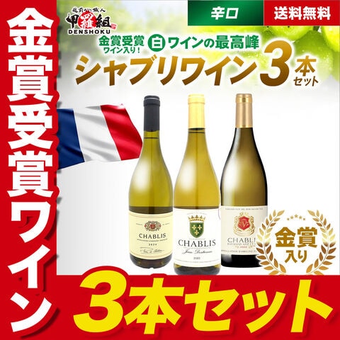 【4/5限定★dカードデー20倍】金賞受賞ワイン入り!白ワインの最高峰 シャブリワイン3本 辛口 金賞受賞ワイン入り 白ワイン 飲み比べ セット 送料無料 Chablis ブルゴーニュ シャブリ