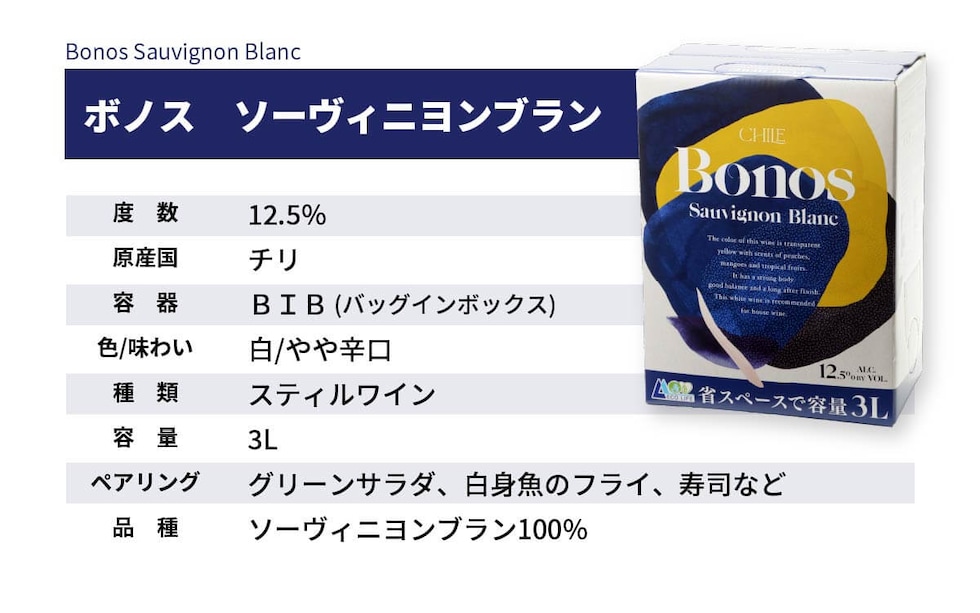 ボノス 3Lx4箱 BIB バッグインボックスワイン 箱ワイン 大容量 赤ワイン 白ワイン イベント パーティ キャンプ お祝い ソーヴィニヨンブラン カベルネソーヴィニヨン
