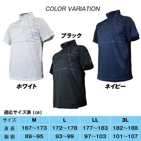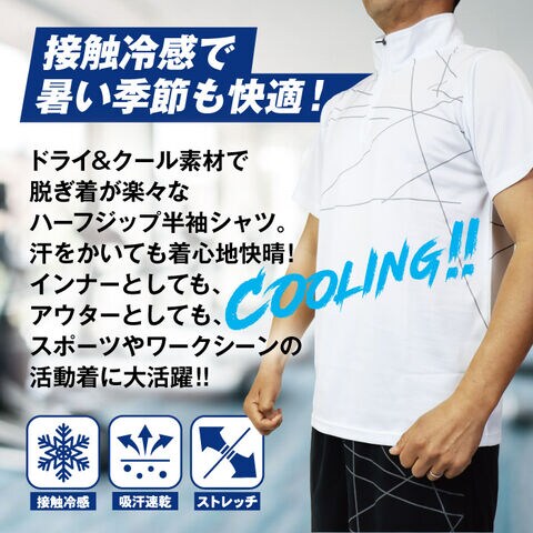 メンズ A.D.ONE エーディーワン 吸汗 速乾 半袖 ハーフジップ ホワイト 白 ストレッチ Tシャツ スポーツ ゴルフ 男性 紳士 仕事着 普段使い 夏 接触冷感 COOL