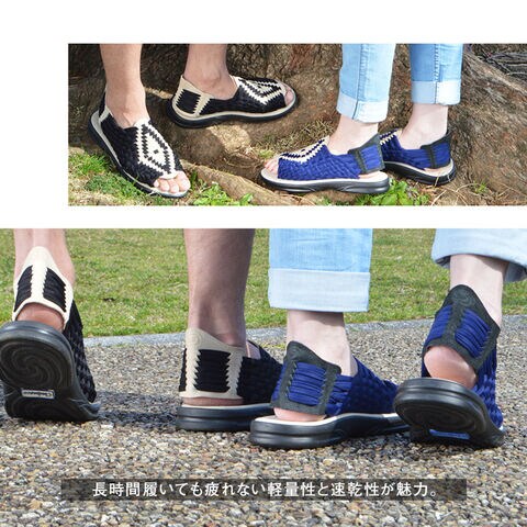 春夏は素足でアウトドア・レジャーシーンにも◎、秋は靴下などを組み合わせて通年履けるサンダルです。