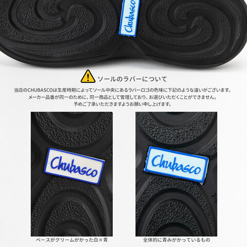 当店のCHUBASCOは、生産時期によってソール中央にあるラバーロゴの色味に下記のような違いがございます。
