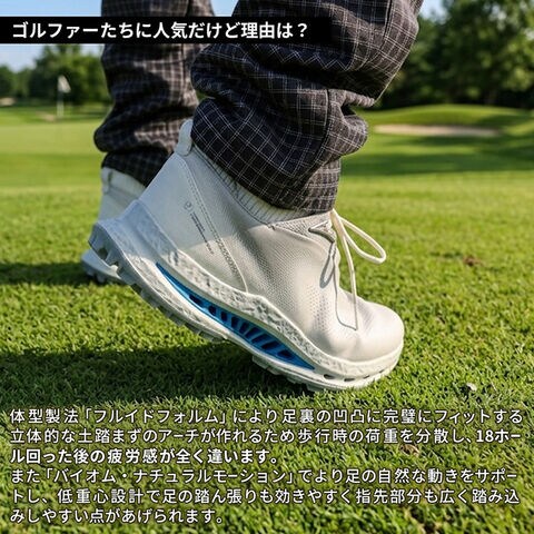 ・BIOM NATURAL MOTION(バイオム・ナチュラルモーション): 低重心設計で足本来の自然な動きをサポートし、歩行時やスイング時の疲労を軽減します。