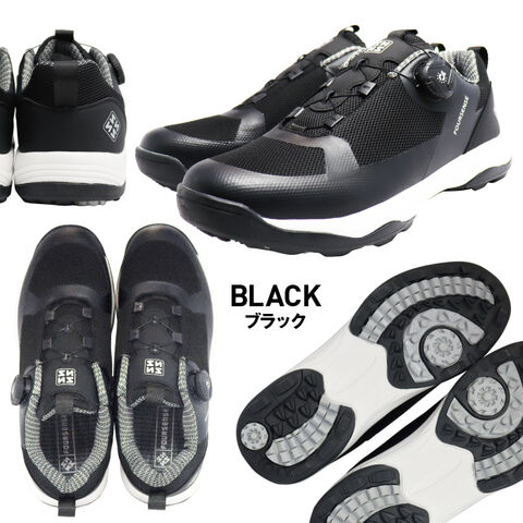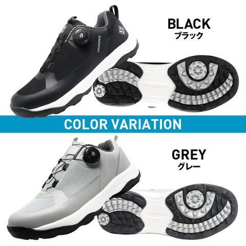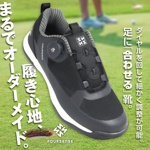 ダイヤル ゴルフ シューズ メンズ 軽量 ニット 高機能 スパイクレス 紐なし 初心者 100切り 靴 シンプル フォーセンス イージ4 黒 グレー GOLF FOURSENSE