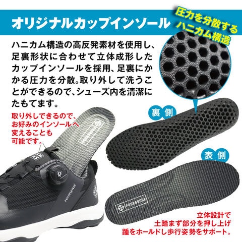 オリジナルインソールーは圧力を分散するハニカム構造の高反発素材を使用し、