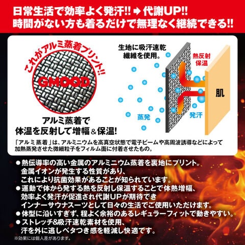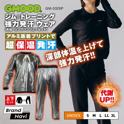 GMOOD メンズ レディース 男女兼用 ジームード 強力発汗 ジム&トレーニング ウェア 長袖 ロングスリーブシャツ ロングパンツ 上下セット インナー 普段使い 着るだけ ながら 仕事 スポーツ セルフケア 代謝 体温