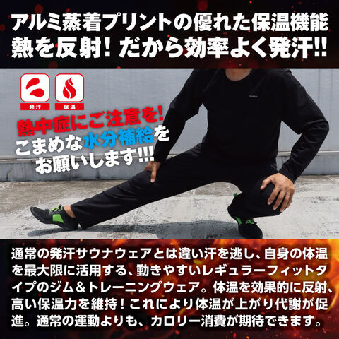 強力発汗 ジム&トレーニング ウェア 発汗インナー アルミ蒸着プリント 長袖・ロングパンツ上下セット ジームード / Gym Wear by GMOOD GM-202SP