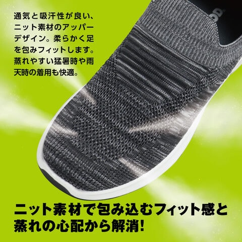 通気と吸汗性が良い、ニット素材のアッパーデザイン。柔らかく足を包みフィットします。