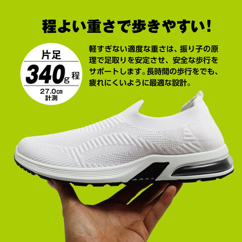 軽すぎない適度な重さ片足(340g程27.0cm計測)は、振り子の原理で足取りを安定させ、安全な歩行をサポートします。